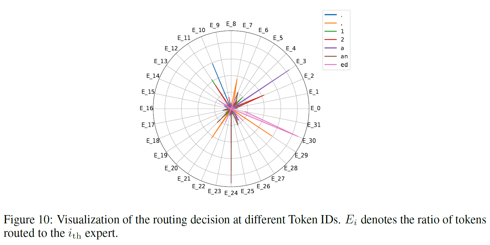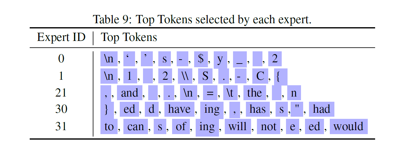 As shown is Figure, experts may cluster similar tokens (but still no matter what the context is).